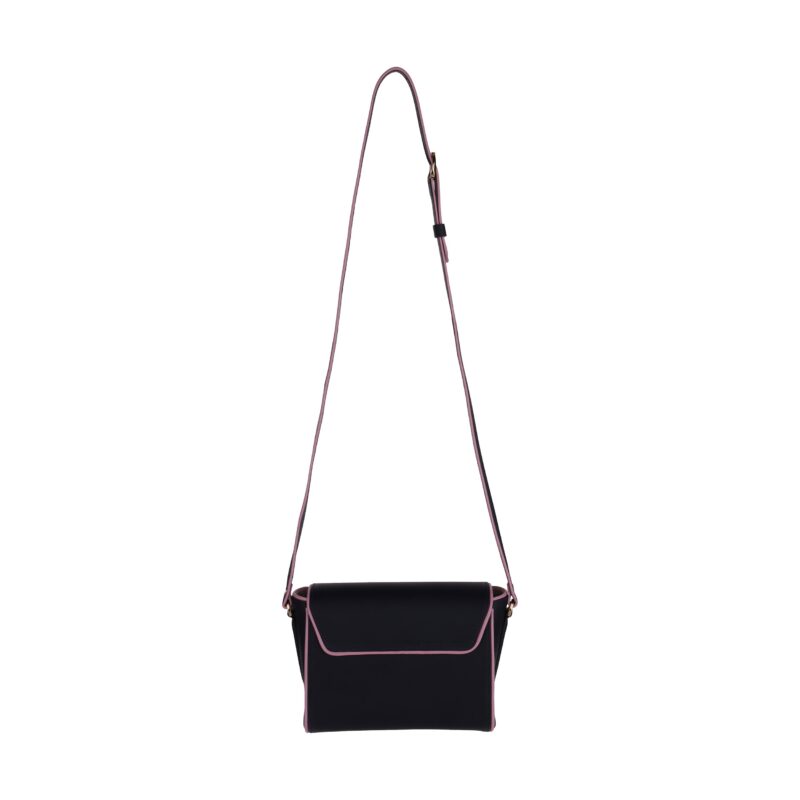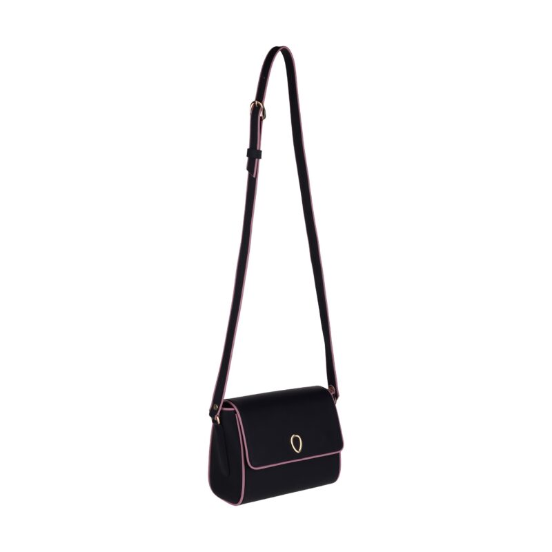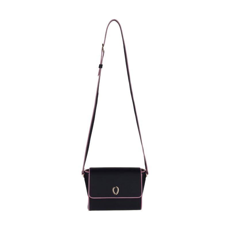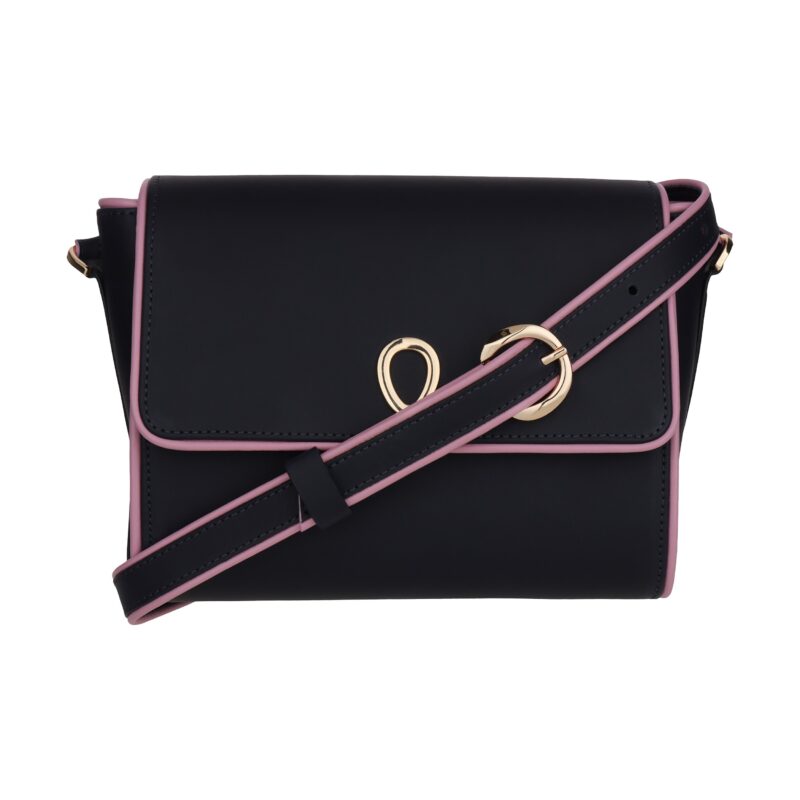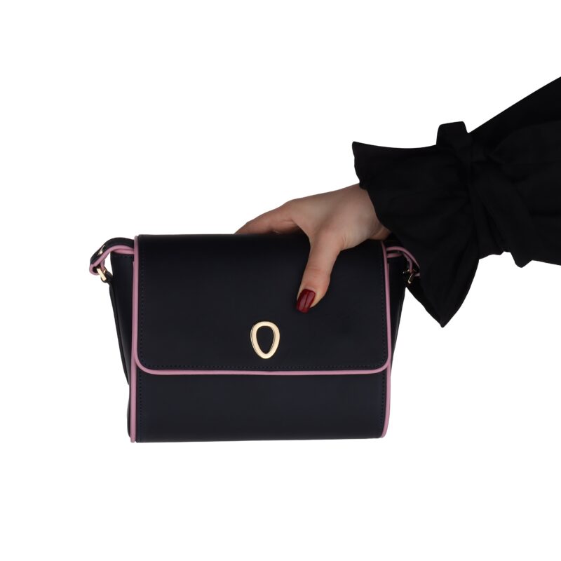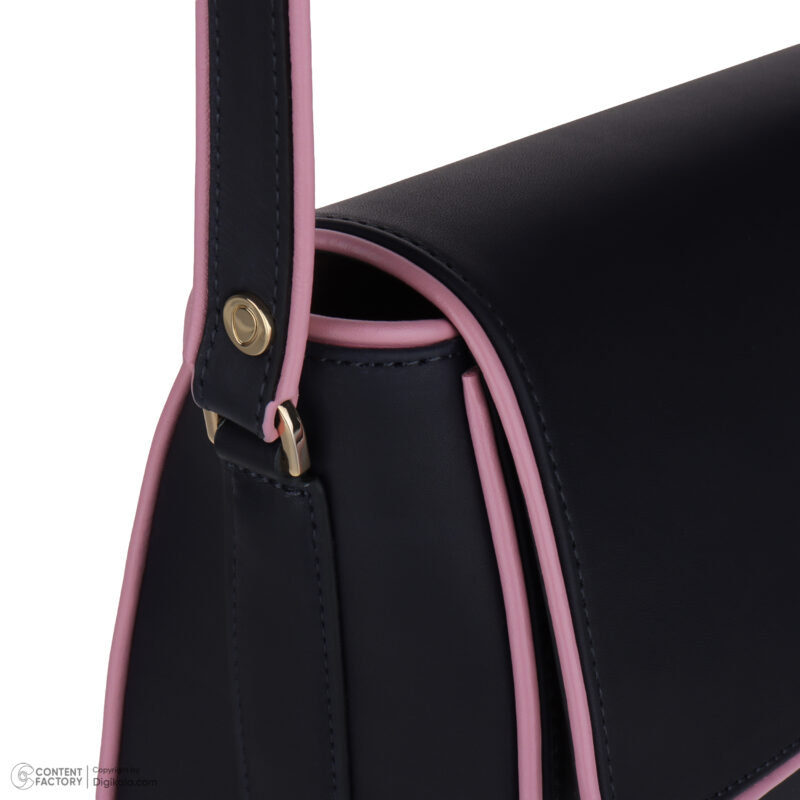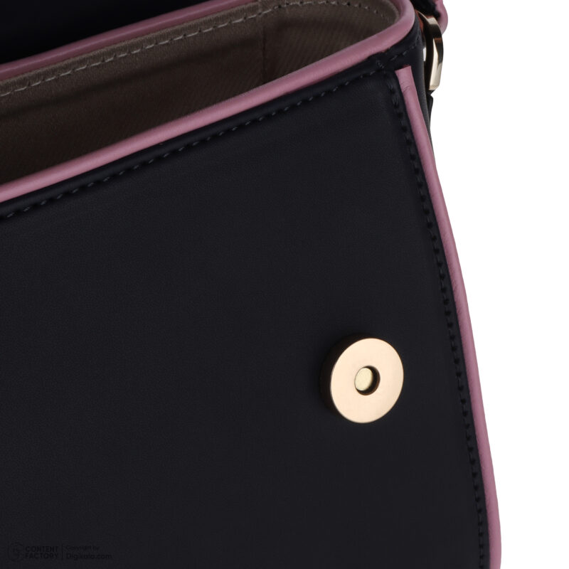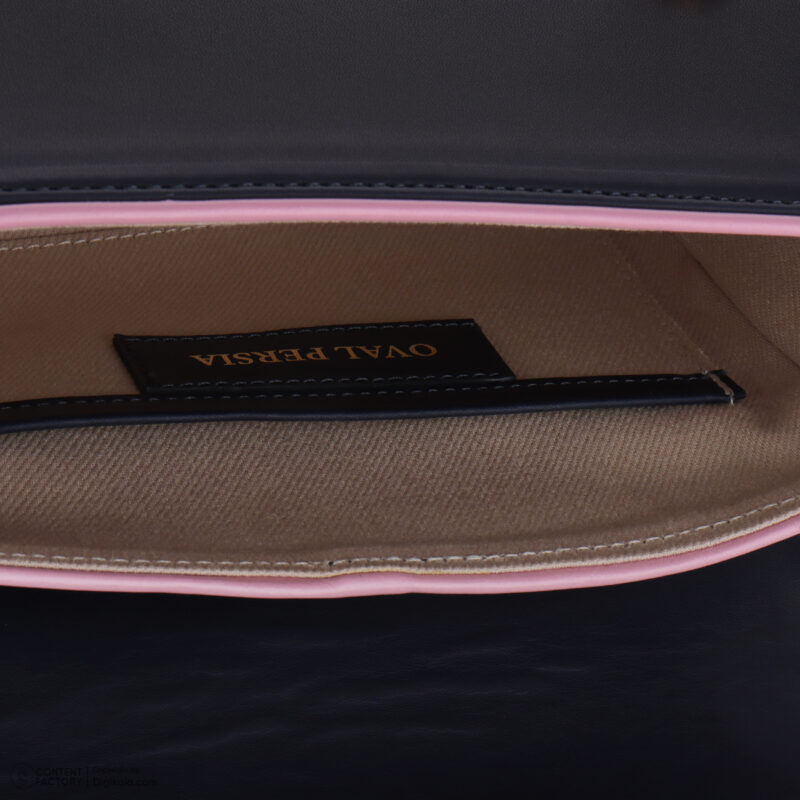کیف زنانه چرم طبیعی Oval مدل 111 رنگ سرمه ای با مغزی صورتی