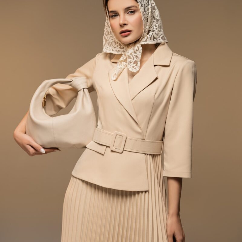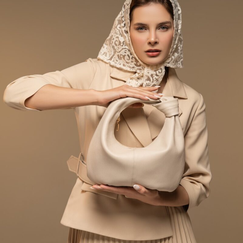 کیف زنانه چرم طبیعی Oval مدل 121 رنگ شیری